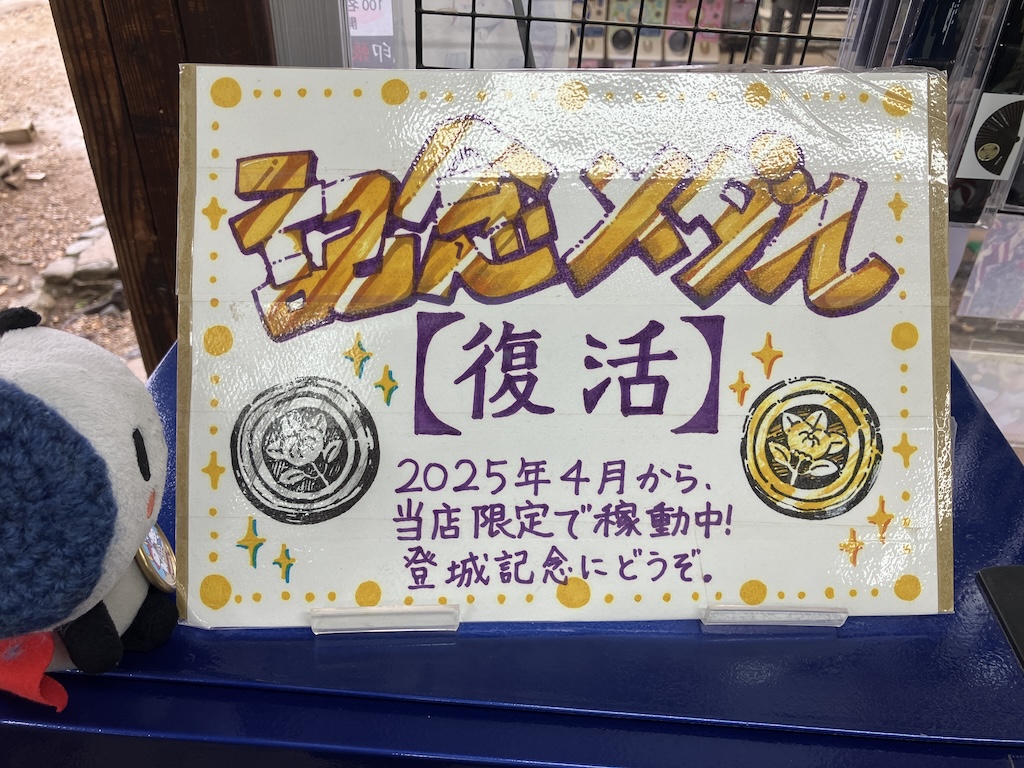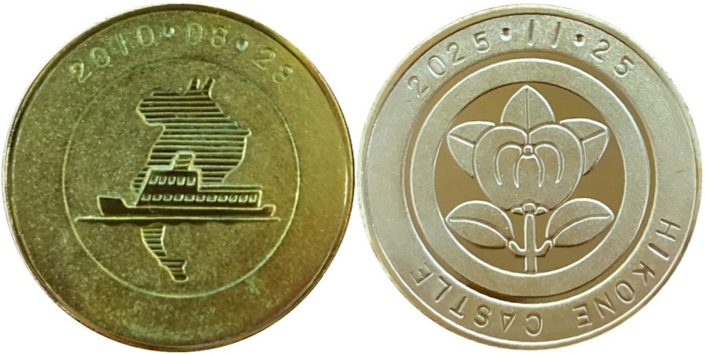【彦根城】は一時期記念メダルの販売を終了していたが、2025年4月に復活したなかなかレアパターンの記念メダルスポットである。70年代とか80年代とか、そこで働く最古参の従業員ですらかつてメダルを販売していた事実を知らないような記念メダルスポットが「懐かしいあの記念メダルがうちにも新登場!」みたいあたかも初めて販売しますみたいなテイで再販売をスタートすることはままあるが、販売終了も復活も現役スタッフが把握していることは実はとても珍しいのである。