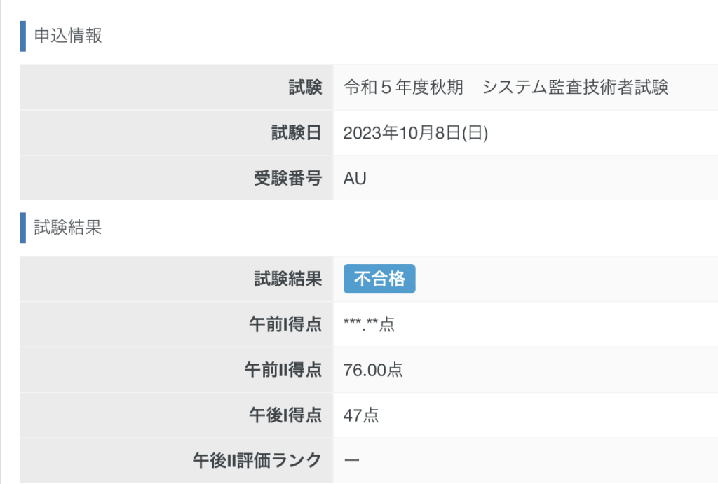 - 【システム監査技術者】は3度目の受験で合格。そしてもう一度合格できるとはとても思えない。過去2度の試験は午後Ⅰ試験が50点にも届かず落ちている。何なら今回も午後Ⅰで絶対ダメだと思っていた。毎回すげー難しいので、受ける前からもう絶対落ちると諦めていたから、コメダで優雅にモーニングを食してから会場に向かったくらい絶望していた。