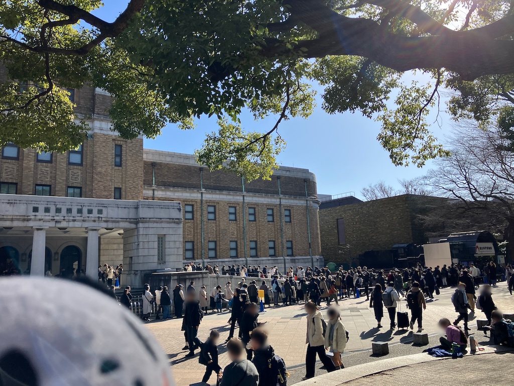 ならいくらかは混雑がマシになるのかな〜と淡い期待を抱く私。思えばコロナ禍のときに入場時間帯指定チケットは消費者側にとっては非常に良い制度だったという印象がある。当日販売チケットはとっくに完売で事前に購入してないとその日に入場自体ができないなんてことが多発したが、入場人数の制限が厳格だったのでとにかく展示が見やすく見学がしやすかったのだ。