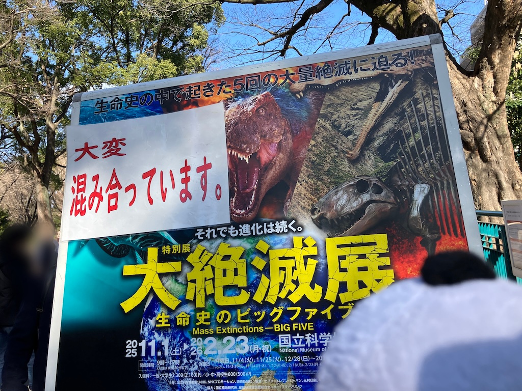 こうして月に一度の帰省の折にやってくるのがもはや恒例となりつつある【国立科学博物館】。開館時間と同時に到着する新幹線➡︎上野東京ラインで向かったところ、そこには想像を絶する地獄絵図が待っていた。