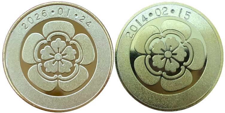まず、入館口にて記念メダルの宣伝POPを発見する。