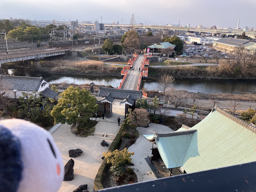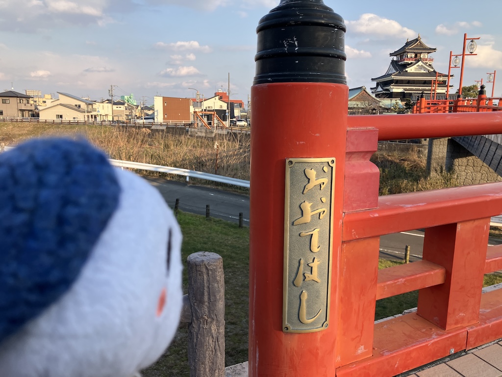 先に何度か訪れていると言ったが、実は周辺を歩いたことはなかった。なんなら写真撮影のスポットになる赤い橋すら渡ったことがなかった(おおてはし)。天守閣最上階からの眺めに「何やらお土産屋さんみたいなものがあるな」とこのとき初めて知ったので、ブログをしっかり書くという義務感から足を運んでみることにした。